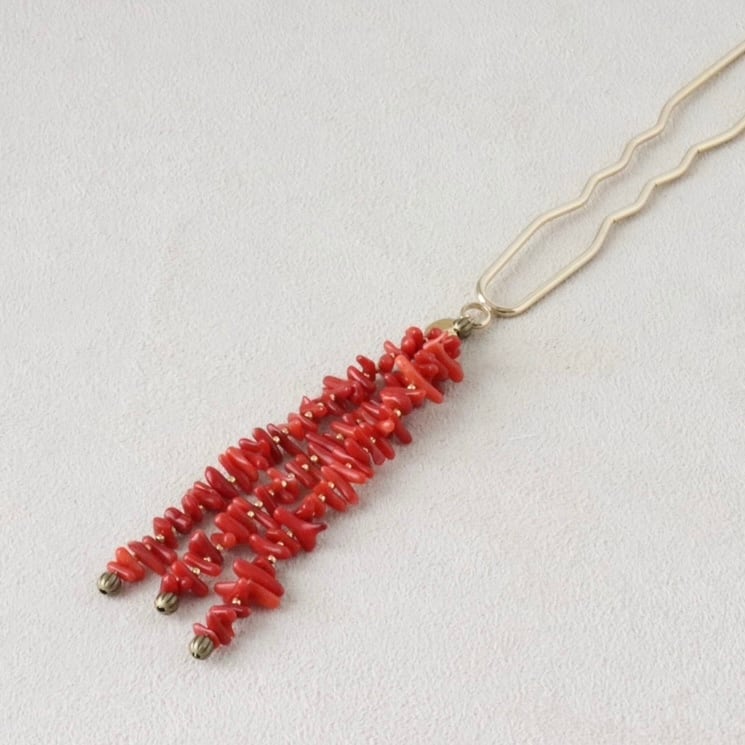 珊瑚(染め)のヴィラ簪